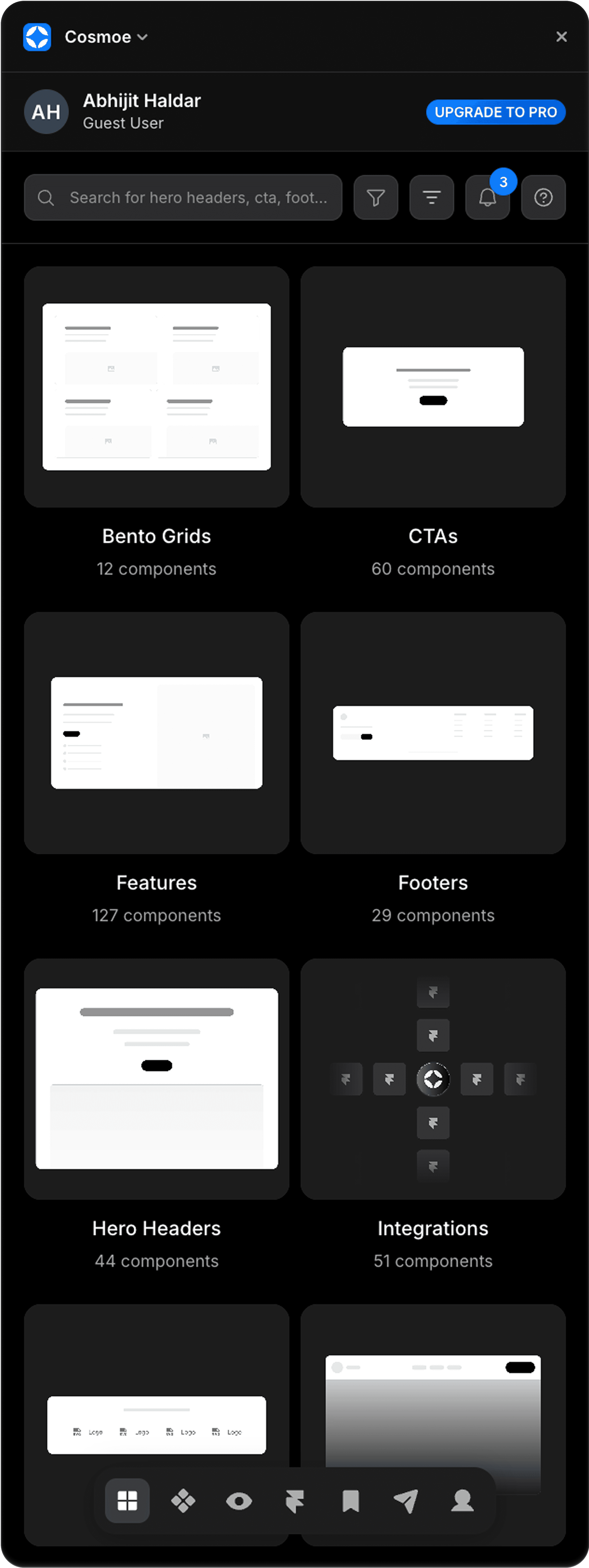 Cosmoe saves design and dev time and adapts to your workflow. Start for free today and upgrade to take full advantage of the library.